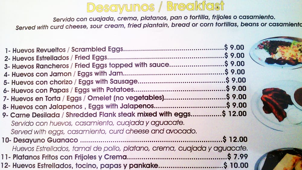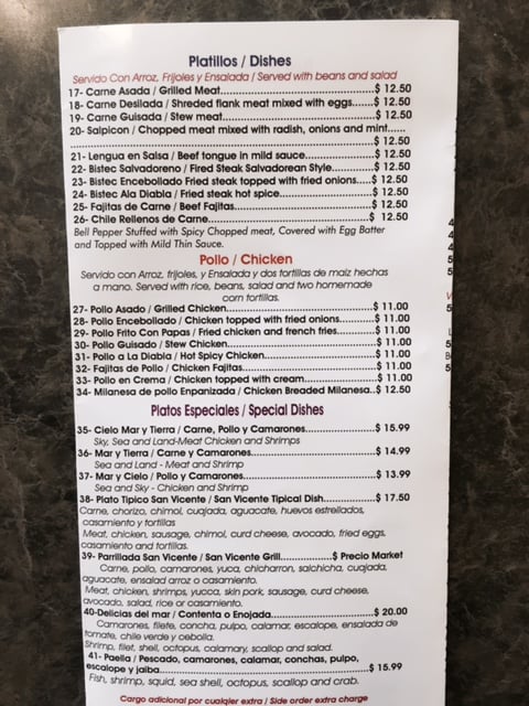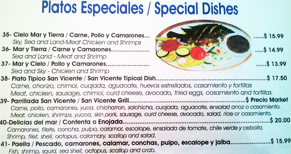Restaurante San Vicente Menu